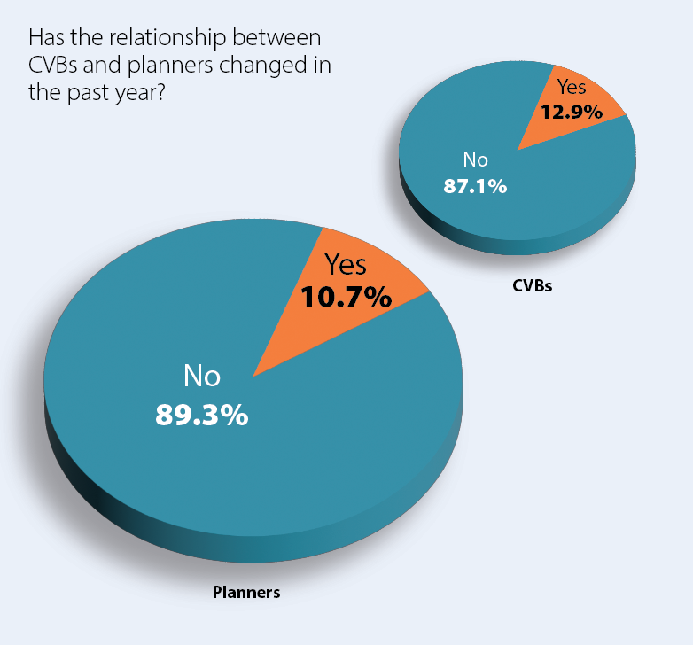 Most encouraging for our focus on relationships, both sides overwhelmingly indicated the CVB-planner relationship has not been negatively affected by common industry issues. As one respondent noted, “Planners and CVBs share the same goal: to deliver a successful, seamless event that supports attendees and the local community.”