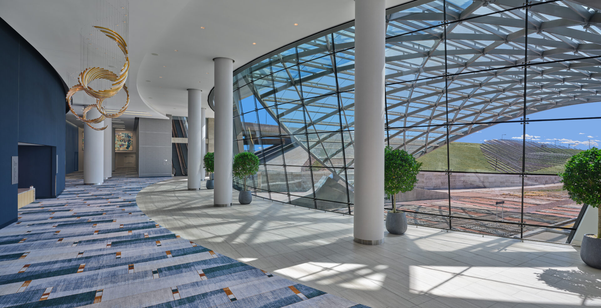 The hotel is directly connected to Denver International Airport’s Jeppesen Terminal. Its redesigned spaces draw inspiration from the Westin Hotels & Resorts brand, incorporating water-themed design elements and regional influences tied to the American West. Features include updated furnishings, integrated greenery, LED lighting, and floor-to-ceiling windows that provide natural light and views of the Colorado Front Range.
